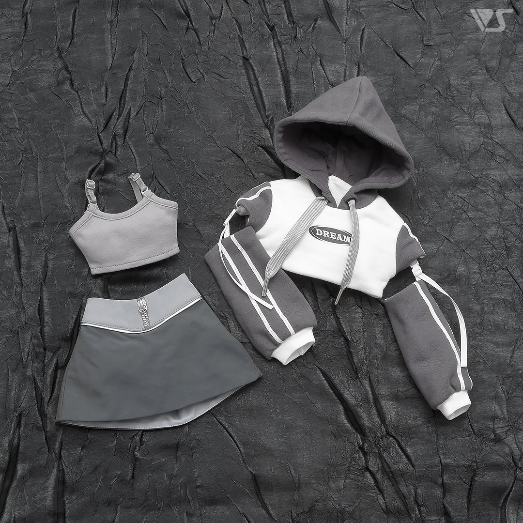 Camisole, hoodie, miniskirt